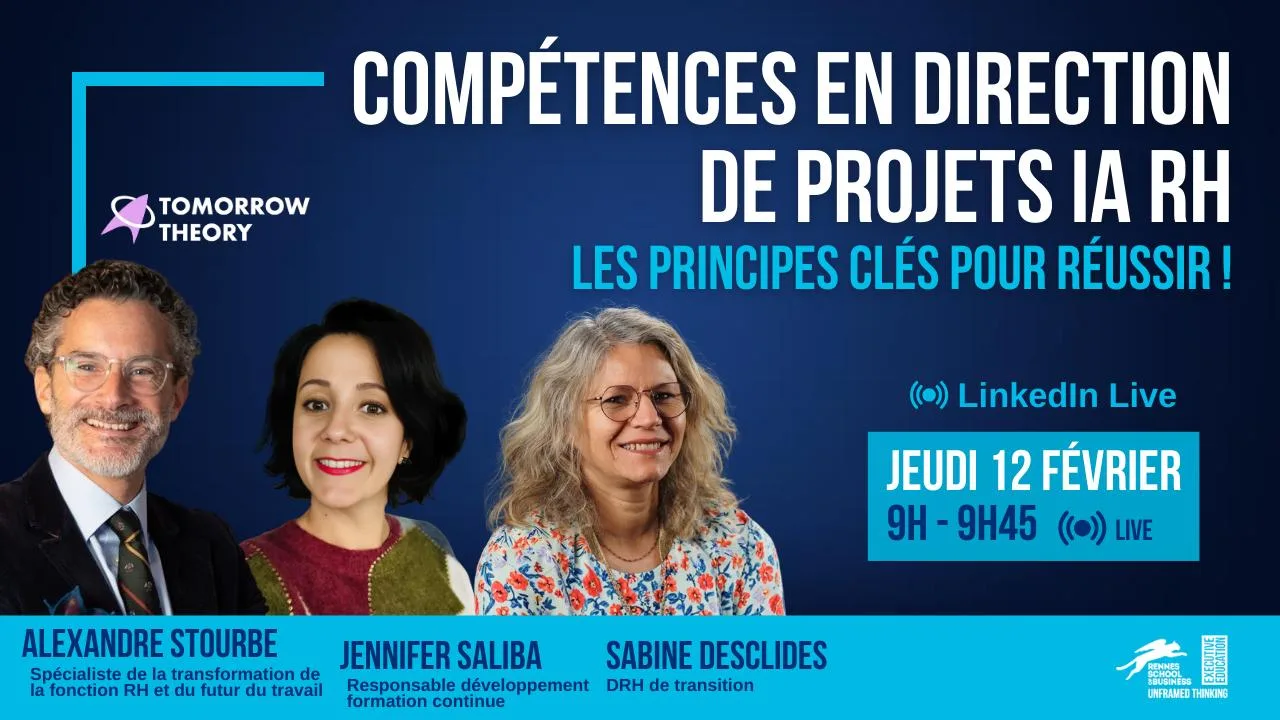 Rennes Business School organise un webinaire dédié aux compétences clés pour piloter des projets IA RH, entre vision stratégique, gouvernance et conduite du changement.